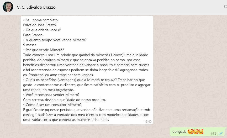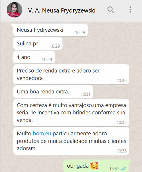 A cada 45 dias o representante vai até a casa da consultora atende-la